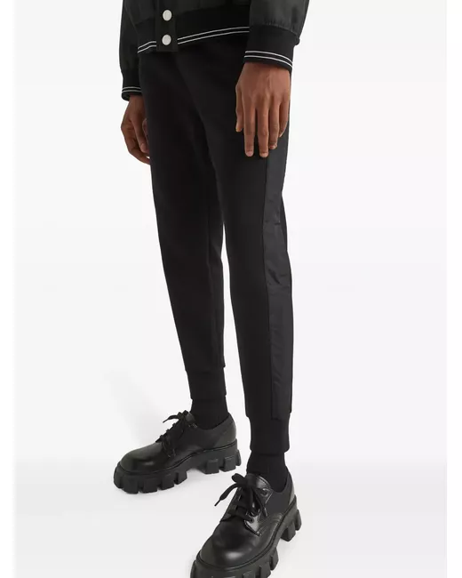 black cotton blend logo patch to the rear elasticated waistband two side slit pockets