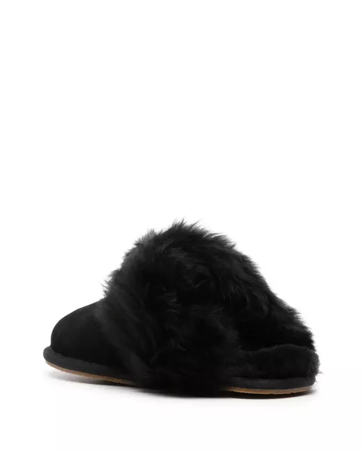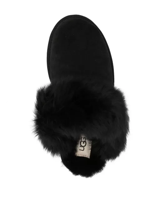 black shearling embossed logo to the side round toe slip-on style branded insole rubber sole