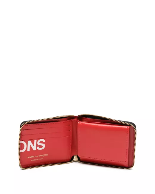 cardinal red leather all-over logo print gold-tone hardware all-around zip fastening internal logo stamp internal card slots internal note compartments