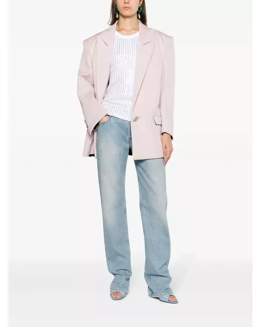 light pink virgin wool blend peak lapels front button fastening long sleeves chest welt pocket two front flap pockets full lining straight hem