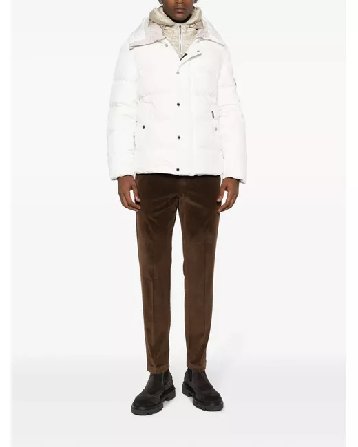 white feather down layered design padded design classic hood front zip fastening long sleeves sleeve zip pocket two front button-fastening jetted pockets straight hem