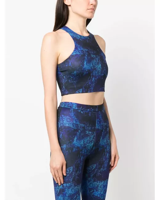 midnight blue stretch-jersey all-over logo print round neck sleeveless racerback cropped