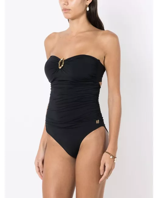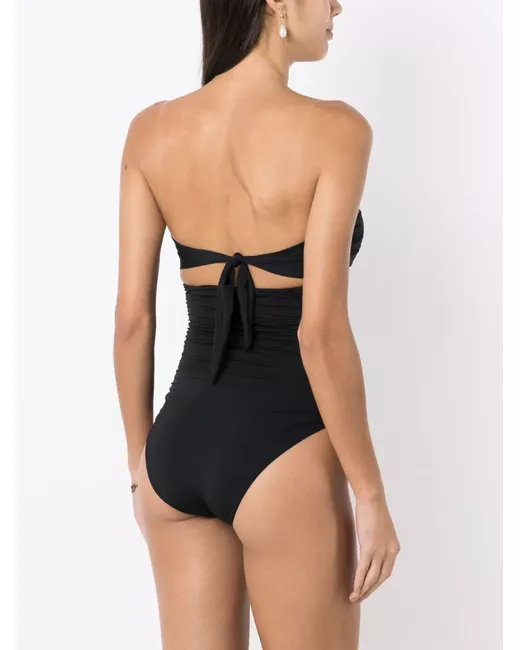 black stretch-design gold-tone hardware ruched detailing strapless rear tie fastening Be mindful to try on swimwear over your own garments.