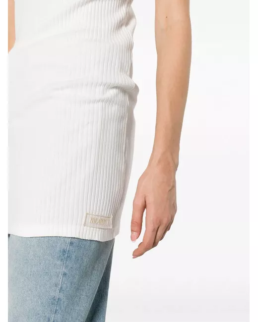 white cotton ribbed detailing logo patch to the front round neck sleeveless racerback straight hem