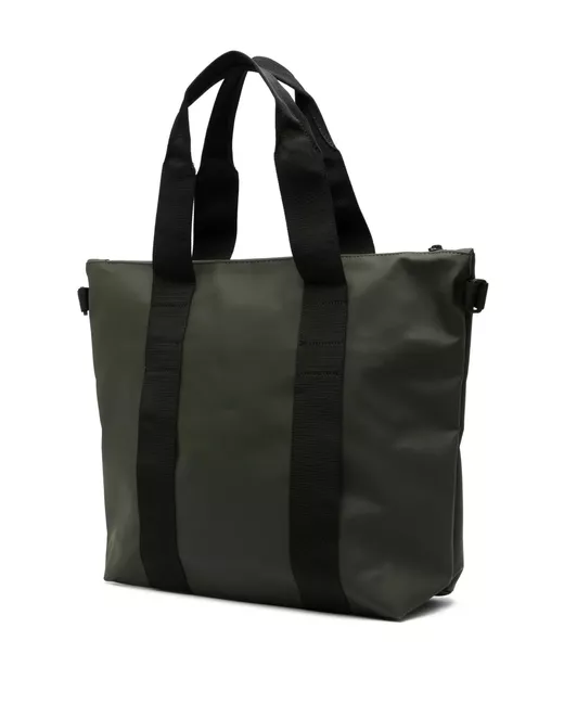 dark green debossed logo to the front two top handles top zip fastening main compartment internal slip pocket