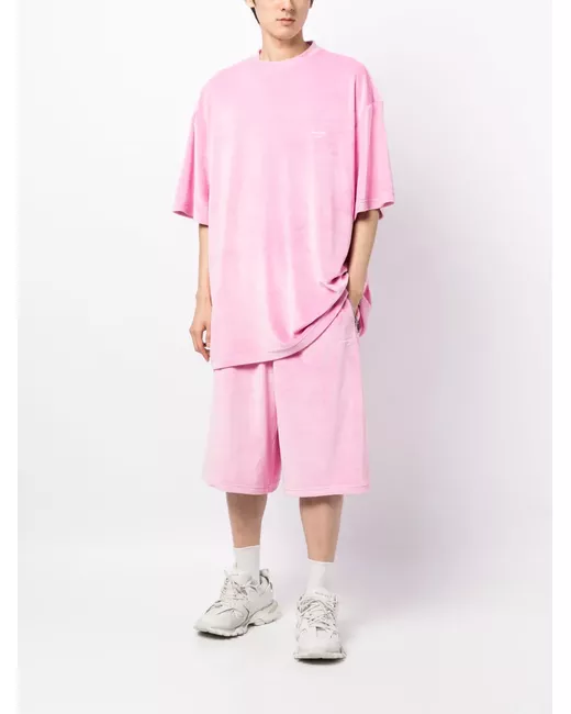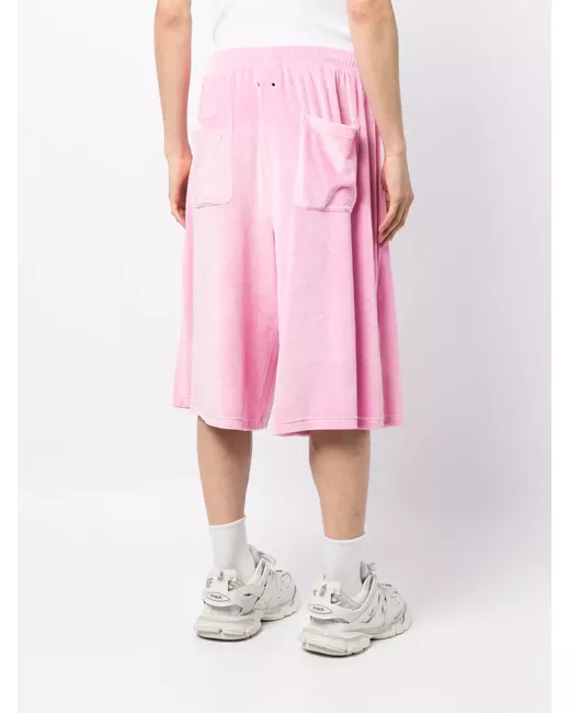 light pink stretch-jersey brushed effect eyelet detailing elasticated drawstring waistband wide leg two side zip-fastening pockets two rear patch pockets below-knee length When buying this unisex item, keep in mind that it is graded in standard men's sizing.