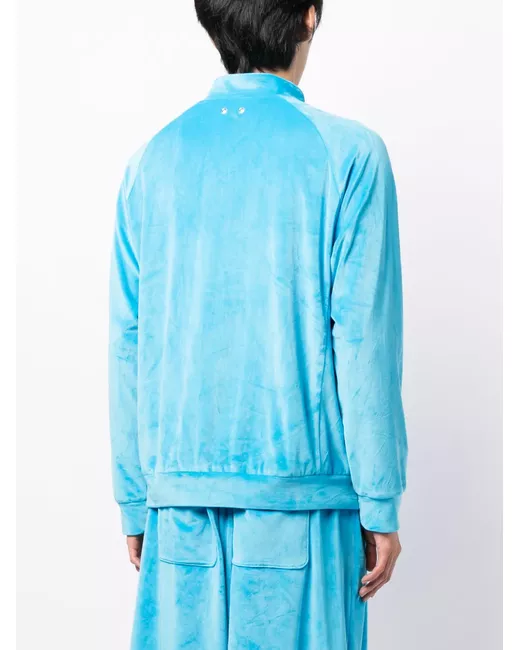 sky blue stretch-jersey brushed effect crinkled finish embroidered logo at the chest metal eyelet detailing stand-up collar front zip fastening long raglan sleeves fitted-cuff sleeves two side zip-fastening pockets straight hem When buying this unisex item, keep in mind that it is graded in standard men's sizing.