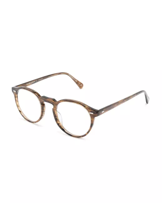 brown acetate patterned round frame clear lenses straight arms curved tips These glasses come with a protective case. All glasses from FARFETCH are sold as non-prescription frames.