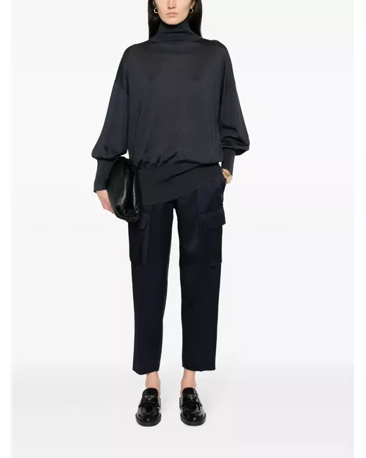 navy blue cashmere-silk blend knitted construction roll neck drop shoulder long sleeves ribbed cuffs and hem