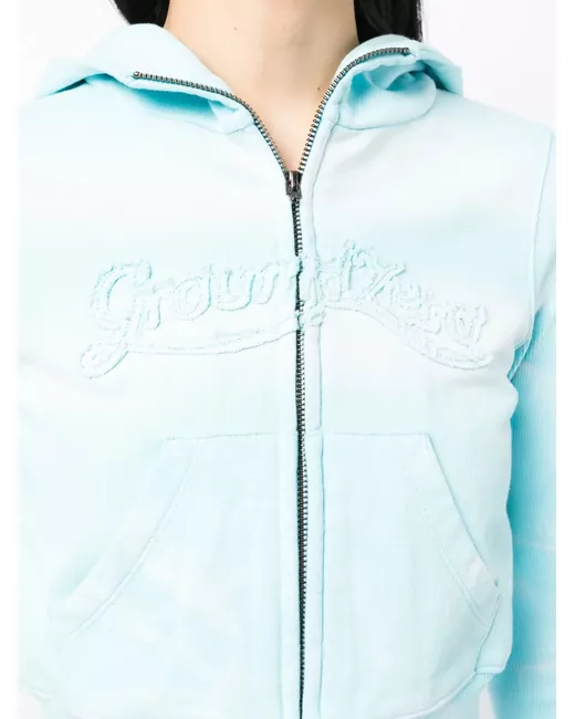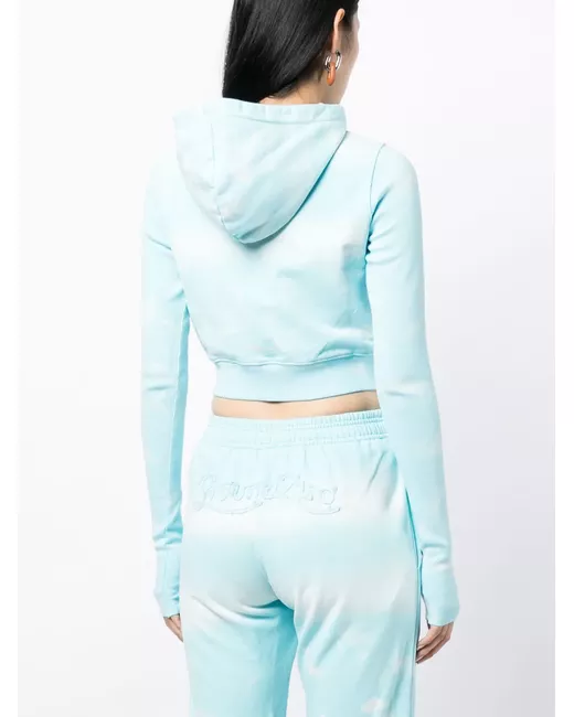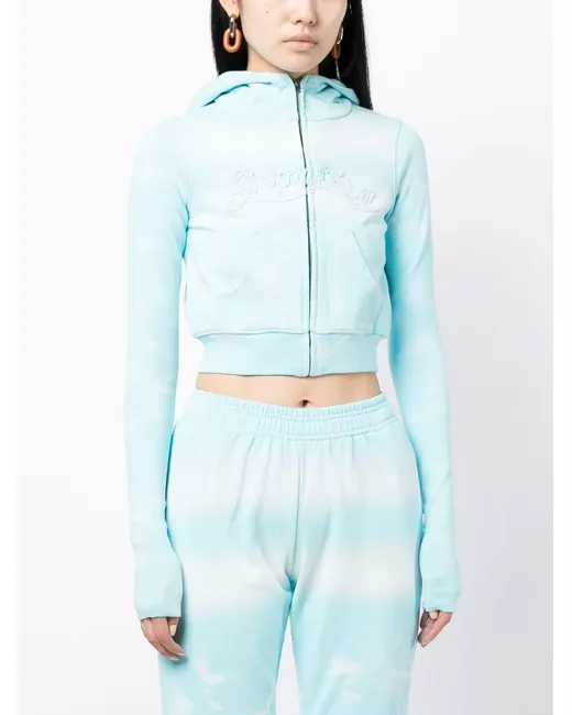 sky blue/white cotton jersey texture tie-dye print embroidered logo to the front ribbed panelling classic hood front zip fastening long sleeves two front pouch pockets long sleeves ribbed cuffs and hem