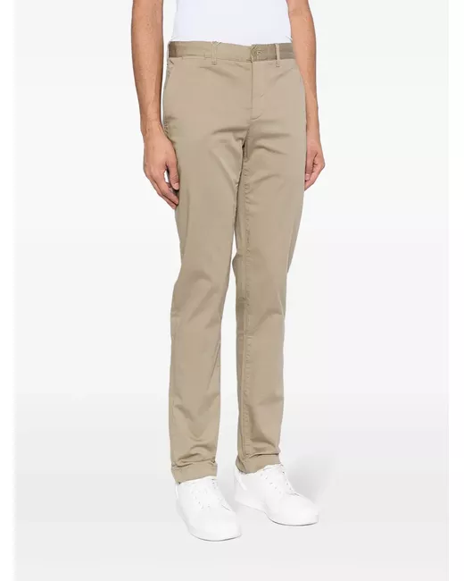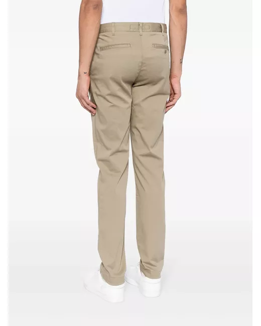 light brown stretch-cotton logo patch to the rear front button and zip fastening belt loops slip pockets to the sides two rear welt pockets slim cut straight leg