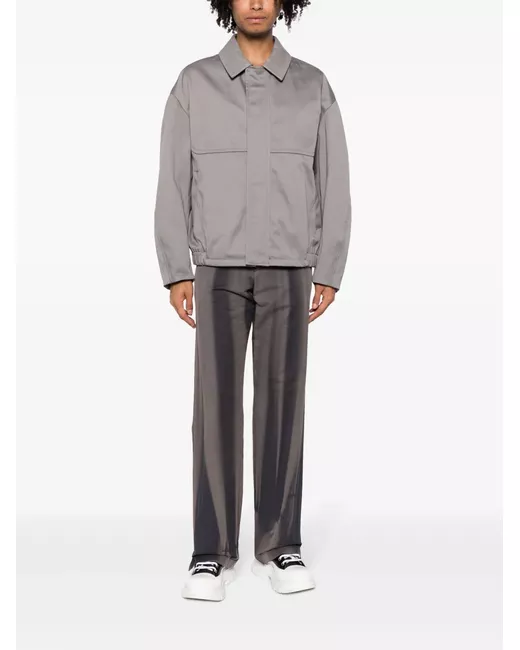 gunmetal grey cotton padded design spread collar concealed front fastening drop shoulder long sleeves two side welt pockets elasticated hem