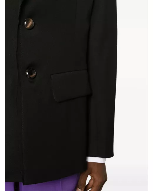 black dart detailing notched lapels front button fastening long sleeves two front flap pockets straight hem