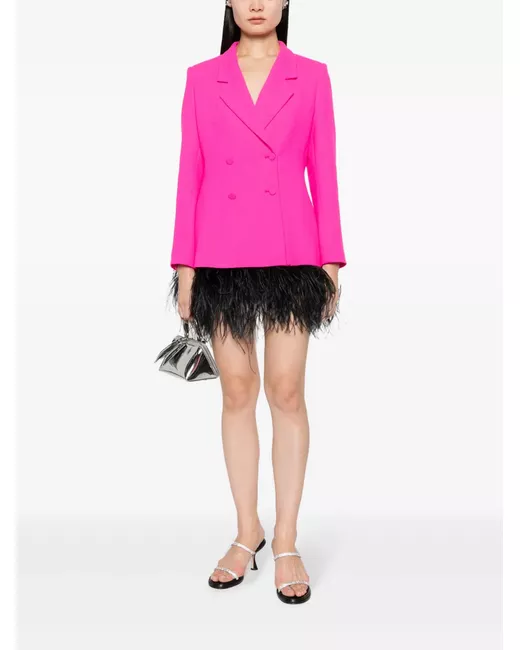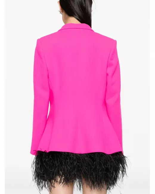 fluorescent pink wool notched lapels double-breasted button fastening long sleeves peplum waist straight hem