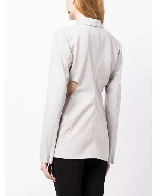 light grey wool cut-out detailing notched lapels front button fastening long sleeves cuff zips two side flap pockets straight hem