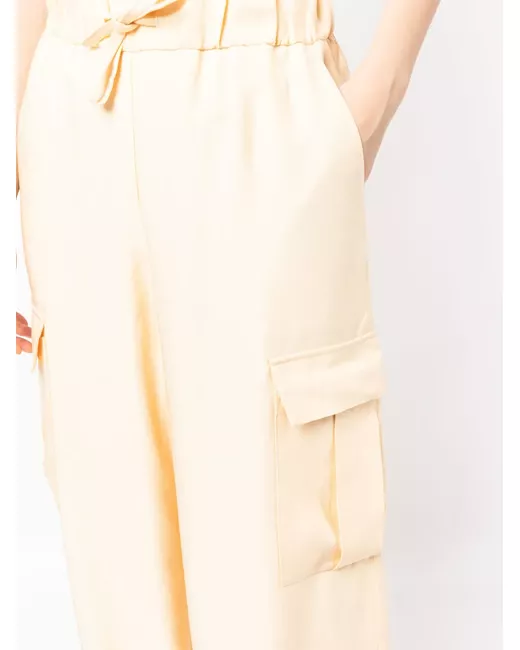 light yellow drawstring fastening waist wide leg two side slit pockets two side cargo pockets drawstring hem