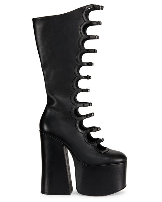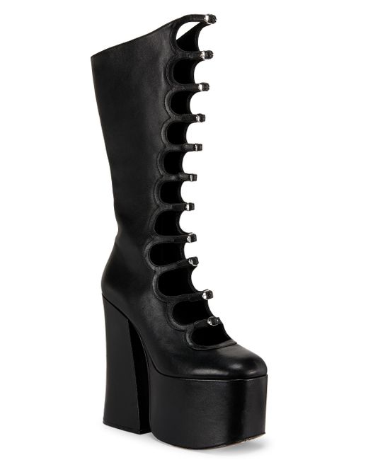 Set on a sky-high platform, The Kiki boots from Marc Jacobs are designed with buckled multi staps. A rounded square toe and knee-high silhouette define the pair. Rounded square toe Side-zip closure and adjustable buckles Leather upper Leather sole Imported SIZE Heel: about 6" (150mm) Platform: about 3". Women's Shoes - Workshop Shoes > Marc Jacobs > Saks Fifth Avenue > Barneys. Marc Jacobs. Color: Black. Size: 6.