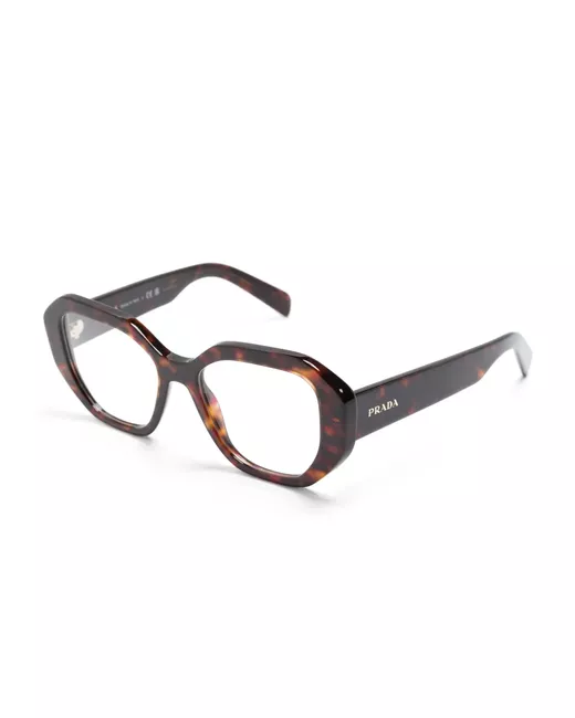 Women's Brown tortoiseshell geometric-frame glasses