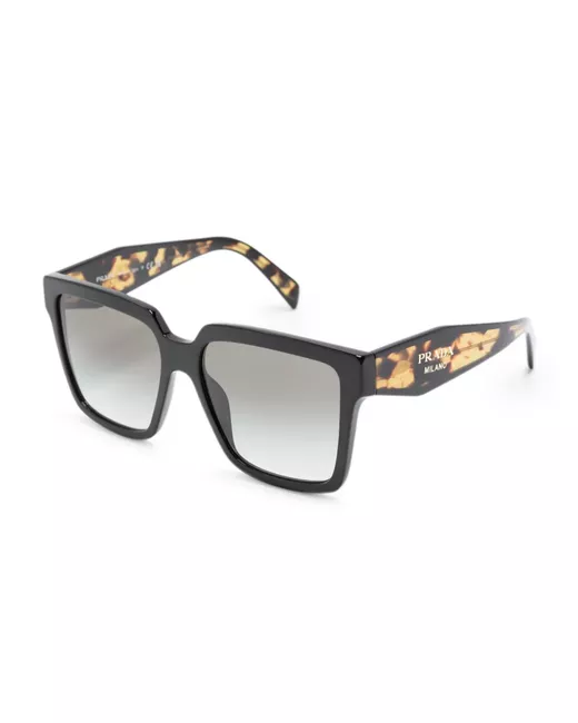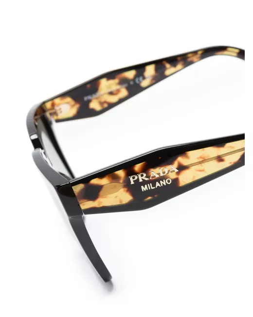 black/Havana brown acetate tortoiseshell effect square frame gradient effect logo print at the arm straight arms curved tips These glasses come with a protective case.