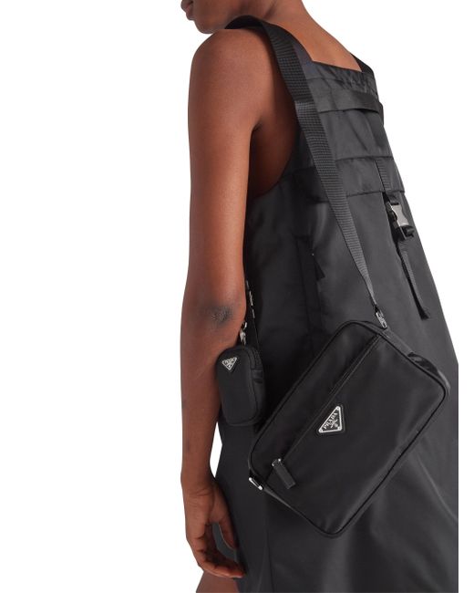 Functionality and sleek lines meet in this shoulder bag with a compact, rectangular design that recalls the streetwear world. Accented with the enameled metal triangle logo and a removable pouch that emphasizes its contemporary character, the accessory is made of innovative Re-Nylon fabric produced from recycled, purified plastic material collected in the ocean. Adjustable 95 cm woven tape shoulder strap Re-Nylon detachable zipper pouch Zipper pocket Metal hardware Enameled metal triangle logo on the front Zipper closure Re-Nylon logo-print lining with zipper pocket Imported This product is not eligible for extended holiday returns SIZE: 23.0W x 15.0H x 7.0L. Lsd Handbags - Prada Handbags Access > Prada > Saks Fifth Avenue > Barneys. Prada. Color: Black.