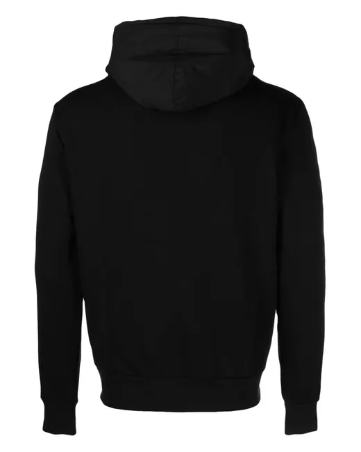 black cotton jersey texture gabardine weave panel detailing logo print at the hood drawstring hood branded zip puller front two-way zip fastening long sleeves ribbed cuffs and hem two front button fastening pouch pockets