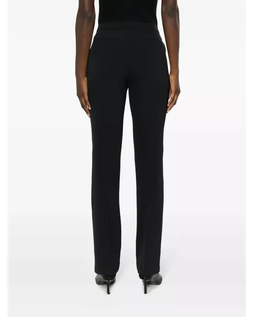 black stretch-design pleat detailing high-waisted flared concealed front hook and zip fastening straight hem