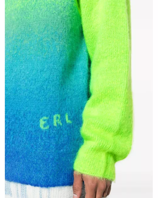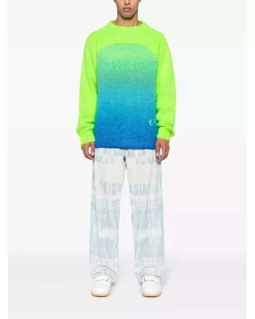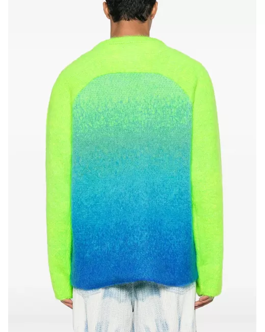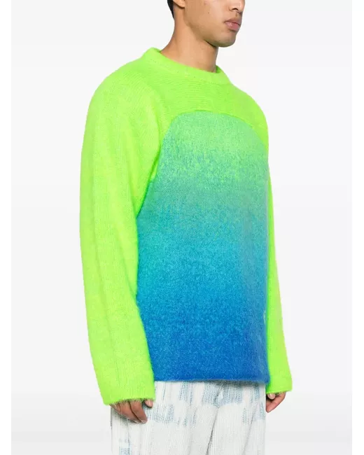 lime green multicolour mohair-wool blend gradient effect brushed finish panelled design intarsia-knit logo crew neck long sleeves ribbed cuffs and hem When buying this unisex item, keep in mind that it is graded in standard men's sizing.