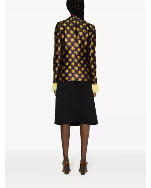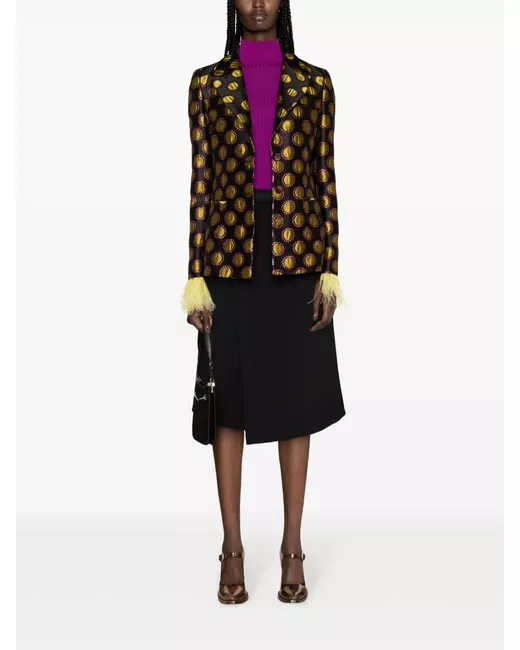 green/lime green/pink patterned jacquard metallic threading shoulder pads fabric-covered buttons notched lapels front button fastening long sleeves chest welt pocket two front jetted pockets Italian rear vents patterned lining