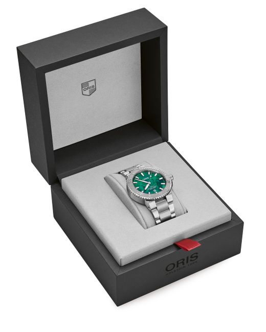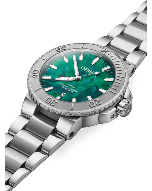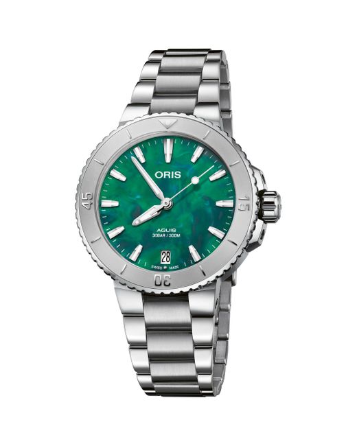 From the Aquis Collection. Oris' Aquis Watch features classic stainless steel construction with a vibrant green dial for a bold finish. Mechanical automatic movement Sapphire crystal Uni-directional rotating bezel Date display at 6 o'clock Second hand Stainless steel case and bracelet Deployant buckle clasp Made in Switzerland FEATURES Water-resistant to 300m SIZE Round case, 43.5mm (1.7"). Fine Jewelry - Fine Watches > Oris > Saks Fifth Avenue > Barneys. Oris. Color: Steel.