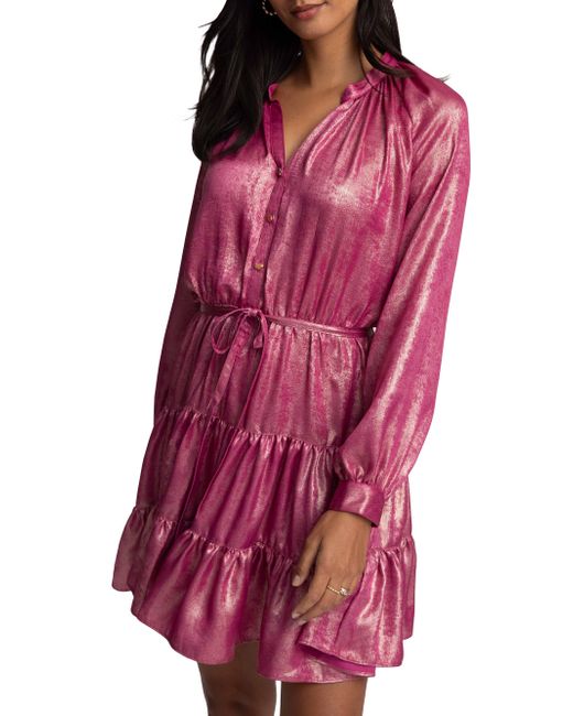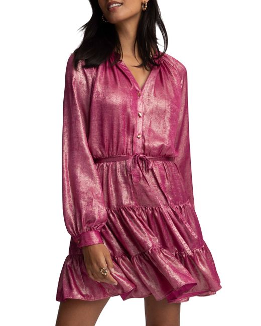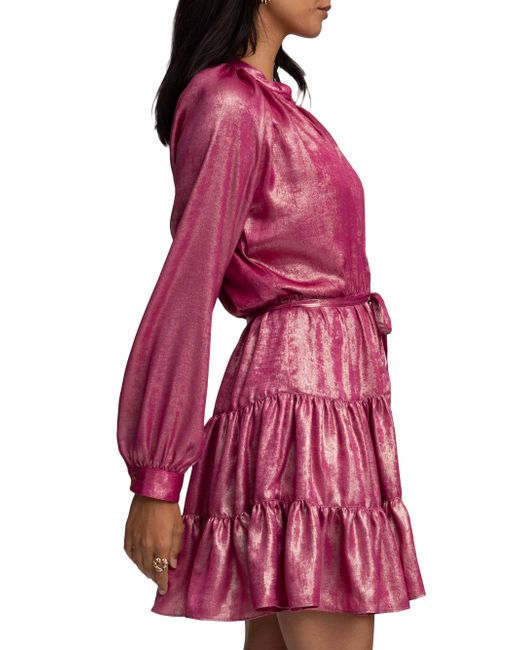 Robert Graham's Sydney dress showcases a tiered skirt, long sleeves, and a slim self-tie waist. This buttoned style is complete with a split neck and metallic foiled finish. Split neck Long sleeves, button cuffs Self-tie waist Button-front closure 100% polyester Dry clean Imported SIZE & FIT About 36.5" from shoulder to hem Model measurements: 5'10" tall Model is wearing a US size Small. Modern Collections - Modern Coll > Robert Graham > Saks Fifth Avenue > Barneys. Robert Graham. Color: Pink. Size: Medium.