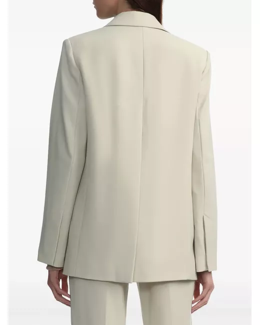 stone logo-piping trim dart detailing notched lapels front button fastening long sleeves chest welt pocket two front flap pockets American rear vent