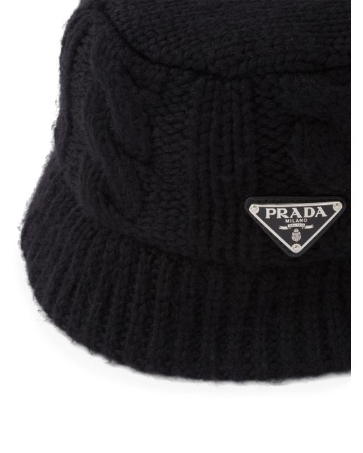 The iconic bucket hat is reinterpreted with a soft texture with wintry allure. Made with a cable-knit pattern, the accessory is decorated with the enameled metal triangle logo. Cable knit Enameled metal triangle logo Cotton lining Imported. Lsd Rtw - Prada Rtw > Prada > Saks Fifth Avenue > Barneys. Prada. Color: Black. Size: Medium.