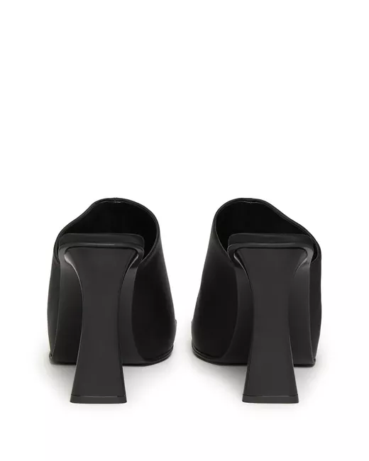 black satin finish branded insole open back slip-on style peep toe high sculpted heel