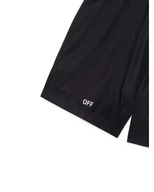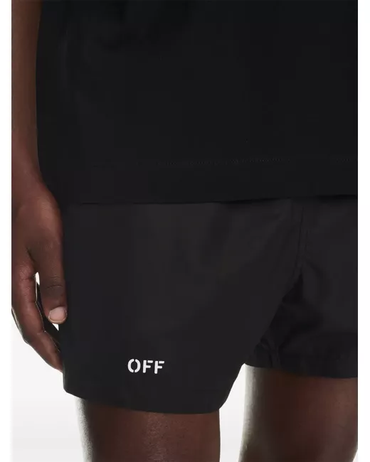 black logo print to the front elasticated waistband thigh-length straight hem Be mindful to try on swimwear over your own garments.