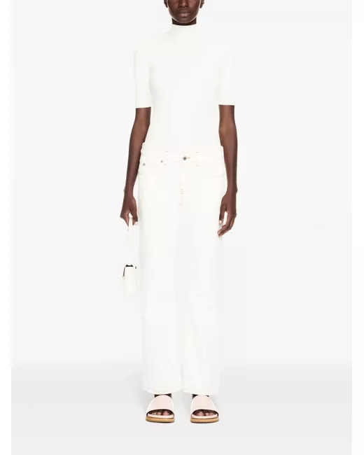 white cotton denim contrast stitching low-rise belt loops concealed fly and button fastening classic five pockets straight leg