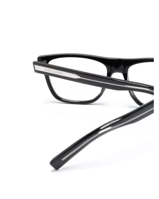 jet black acetate logo-engraved arm square frame clear lenses sculpted arms curved tips All glasses from FARFETCH are sold as non-prescription frames. These glasses come with a protective case.