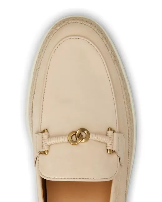 sand beige leather gold-tone hardware logo at the sole almond toe slip-on style branded leather insole ridged rubber sole
