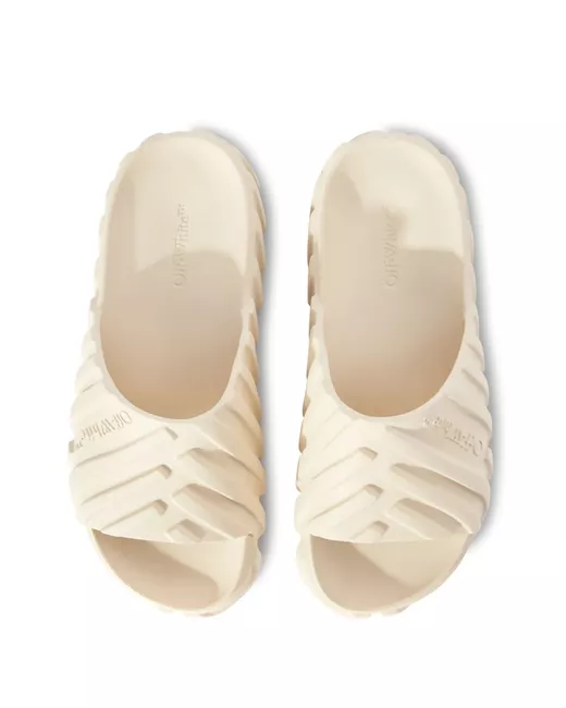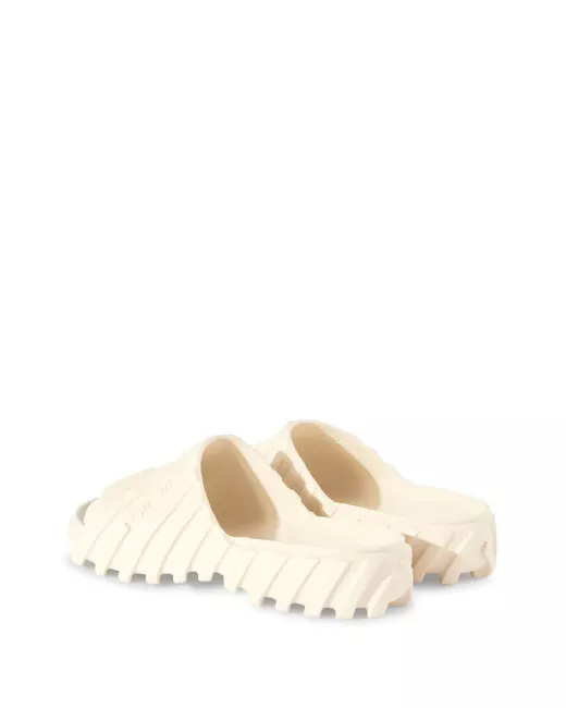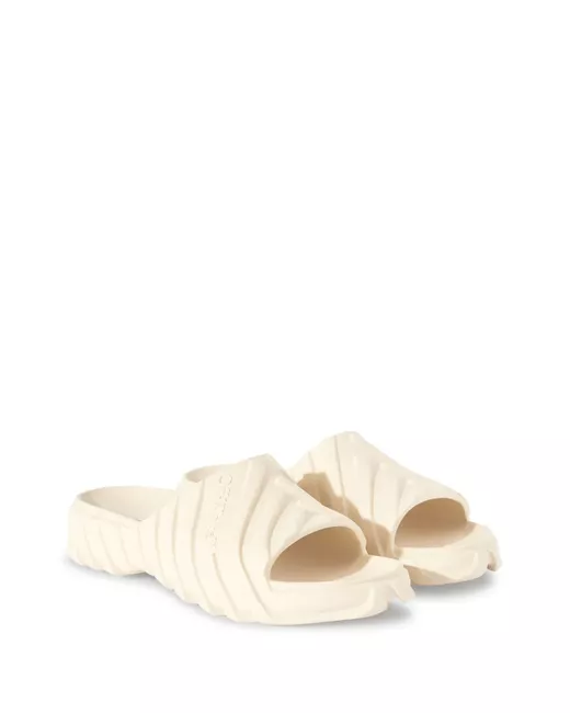 ivory embossed detail embossed logo to the front round open toe single toe strap slip-on style branded footbed flat sole
