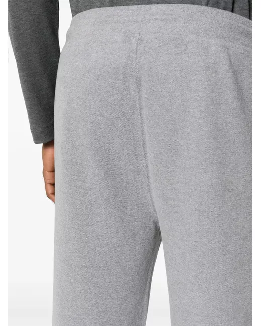 light grey cotton blend jersey texture mélange effect elasticated drawstring waistband tapered leg two side slit pockets straight hem