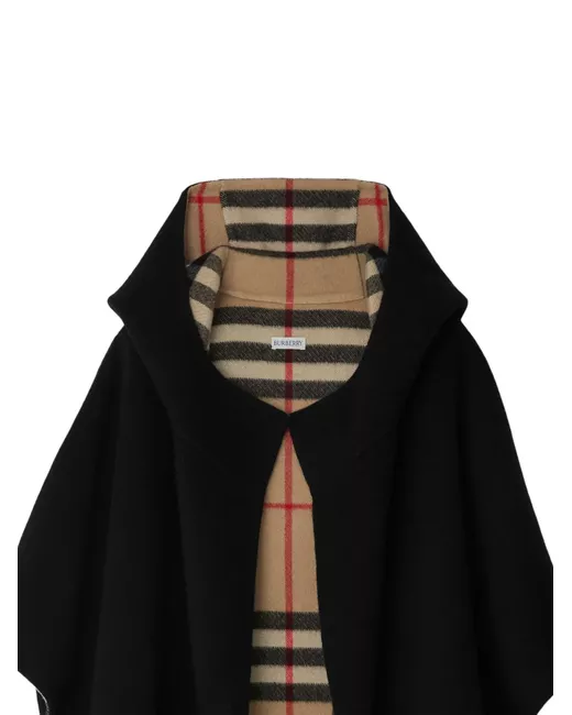 black/archive beige cashmere cape design signature Equestrian Knight motif classic hood Vintage Check-pattern lining asymmetric hem