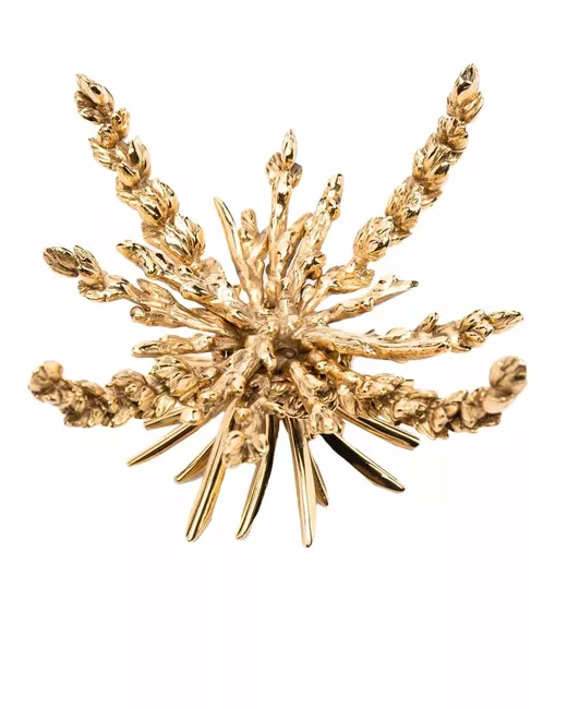 Gold-tone 24kt gold plated brass/crystal Wheat crystal cup from GOOSSENS featuring polished finish and cup in rock crystal on a pedestal adorned with ears of wheat in metal.