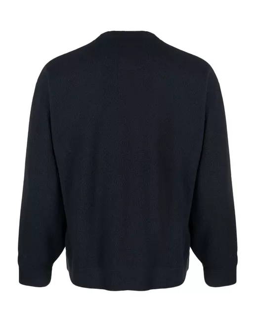 navy blue fleece texture exposed-seam detailing round neck long sleeves two side inset pockets straight hem