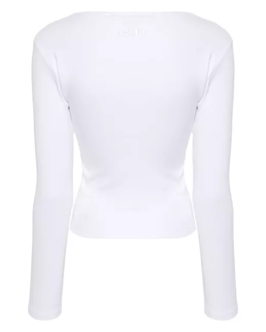 white stretch-cotton fine ribbed scoop neck cut-out detailing at the chest long sleeves straight hem embroidered tonal logo to the rear