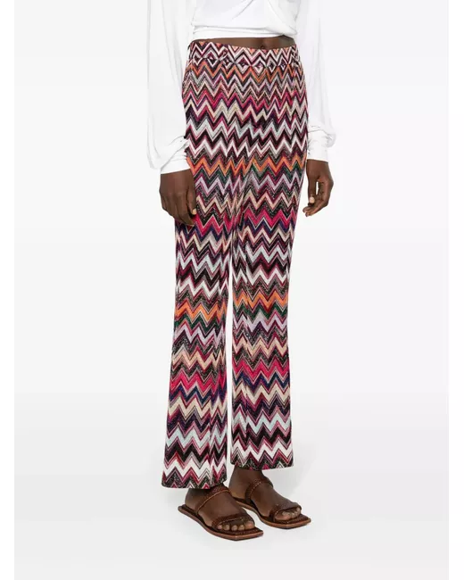 multicolour metallic threading lurex detailing signature zigzag woven design flared design pressed crease hook and zip fly fastening two side slit pockets rear welt pocket The item you receive may differ slightly from the item photographed. This is due to the artisanal nature with which all Missoni products are constructed.