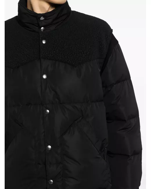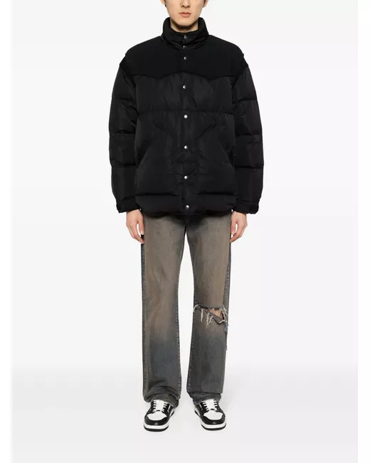 jet black down-feather filling padded design quilted tonal stitching high neck front press-stud fastening drop shoulder long sleeves touch-strap cuffs two front welt pockets curved hem