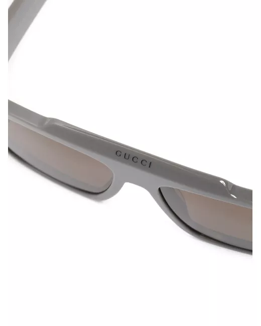 grey acetate square frame brown tinted lenses logo embellishment curved arms These glasses come with a protective case.