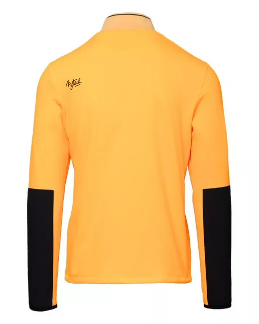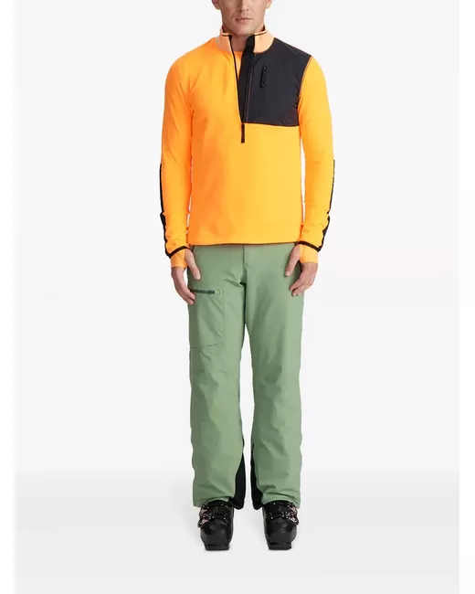 tangerine orange/black recycled polyester fleece texture panelled design mock neck half front zip fastening long sleeves zip-fastening chest pocket straight hem