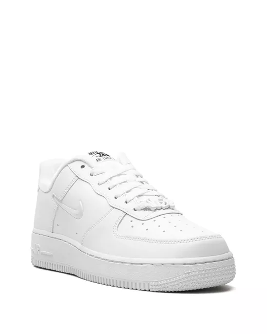 white calf leather tonal stitching signature Swoosh logo detail logo patch at the tongue iridescent decorative plaque front lace-up fastening round toe branded insole vulcanised-rubber sole
