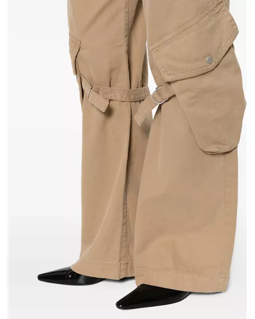 beige cotton mid-rise front button and zip fastening classic five pockets two side cargo pockets wide leg
