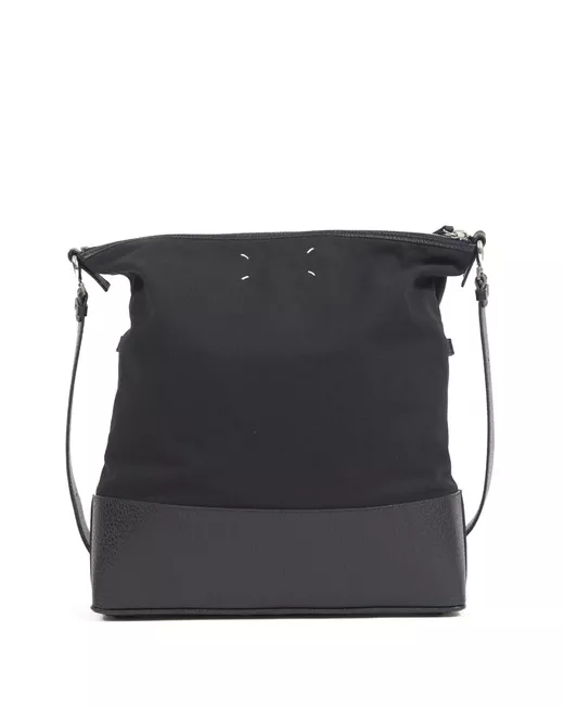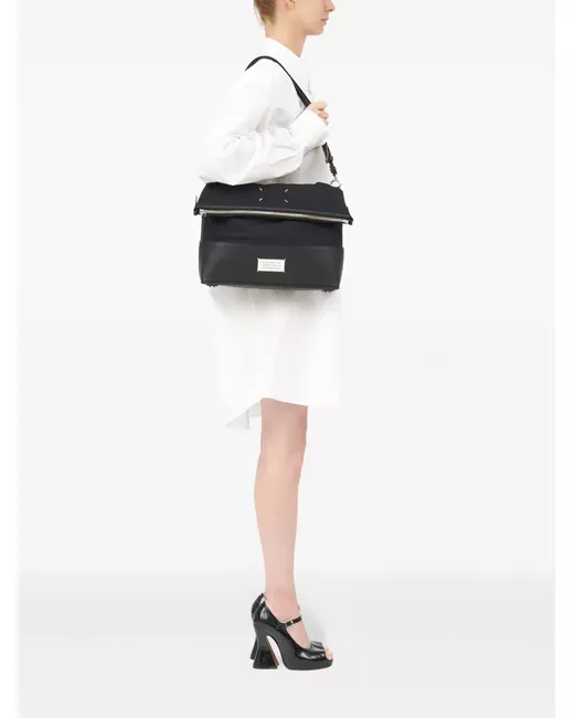 black cotton leather trim signature numbers motif signature four-stitch logo foldover top top zip fastening adjustable detachable shoulder strap main compartment internal logo stamp